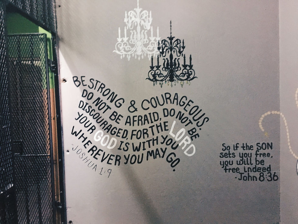Besides my thankfulness for my fellow student friends here, I've really been experiencing the kindness of the staff. Many of them are intentional with their relationships with us. It is nice to see that the staff can love me and every other student before and after me. It is really cool to see how they learn new things from the lectures they've sat in many times (which just keep getting better) and how they continue to grow in areas of insecurity. A few of them have come to be close friends and people that clearly imitate the characters of Christ to the best of their ability. But as the Lord was revealing to me as we walked to my casita, they love us so much and put that love to action. He asked me to seek Him to see what ways I can love and pour into them as well. It's already been really sweet to see God use me and others to renew their joy in this time that could become mundane. One of the ways we practically saw this happen this very week was a little renovation we did. A little room that I've escaped to many times to sit in the comfort and peace of God's presence, got a little facelift! The prayer room has been a dream of the staff and as it came to completion, it still didn't feel completed. So with about half the schools creative minds and the staff too we came up with a plan to finish this prayer room and leave a handprint for schools to come. A place that they can experience a very active Holy Spirit and be inspired to continue to make a difference on this base. So as bible pages were pasted on the walls of a little prayer closet, a table was made for art and a couch moved to accommodate more people. As well as quotes and places for words to be put on the walls. The finished project is beautiful and peaceful and everyday I'm in here I can feel the peace of His presence. Leave an intentional handprint, not an accidental footprint as you pass through. I urge you to let yourself be set on fire by inspiration.